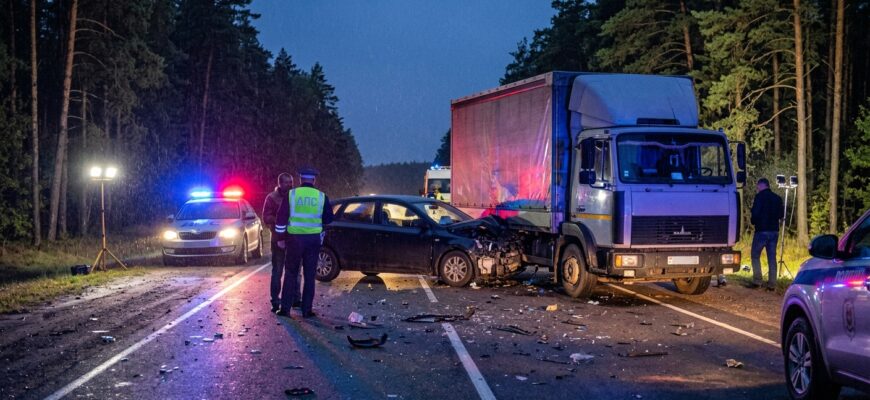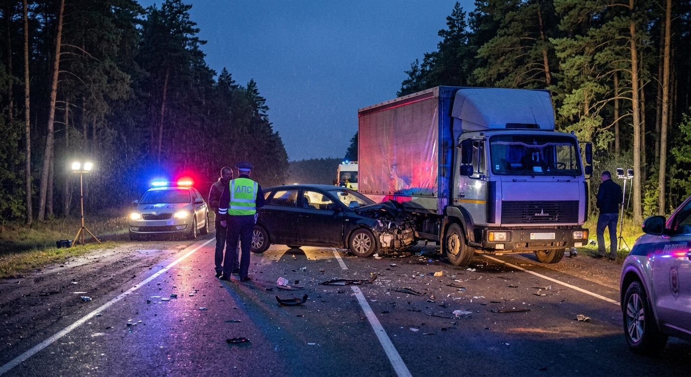 Вечером 28 апреля в Брестском районе произошло дорожно-транспортное происшествие с участием легкового и грузового автомобилей. По данным управления ГАИ УВД Брестского облисполкома, авария случилась около 21:25 на 15-м километре автодороги Р83 Брест – Каменец – Национальный парк «Беловежская пуща».